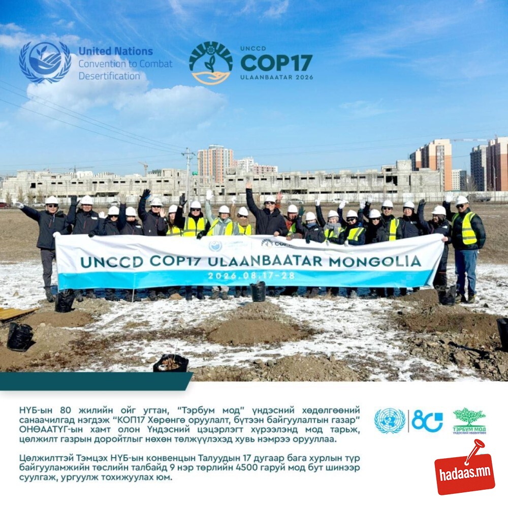 Цөлжилттэй тэмцэх НҮБ-ын конвенцын талуудын 17 дугаар бага хурлыг 2026 оны наймдугаар сарын 17-28-ны өдрүүдэд Монгол Улсад зохион байгуулна. Дэлхийн 190 гаруй орны 10 мянга орчим төлөөлөгч оролцох тус хурлын үеэр цөлжилт, газрын доройтол, ган, бэлчээр зэрэг хүн төрөлхтний өмнө тулгамдаж буй байгаль орчны асуудал, сорил, тэдгээрийг шийдвэрлэх, арга зам, шийдлийг хэлэлцэх юм. Тус хурлын түр байгууламжийн төслийн талбайд нийт есөн нэр төрлийн 4500 гаруй мод бут шинээр суулгаж, ургуулж тохижуулна.